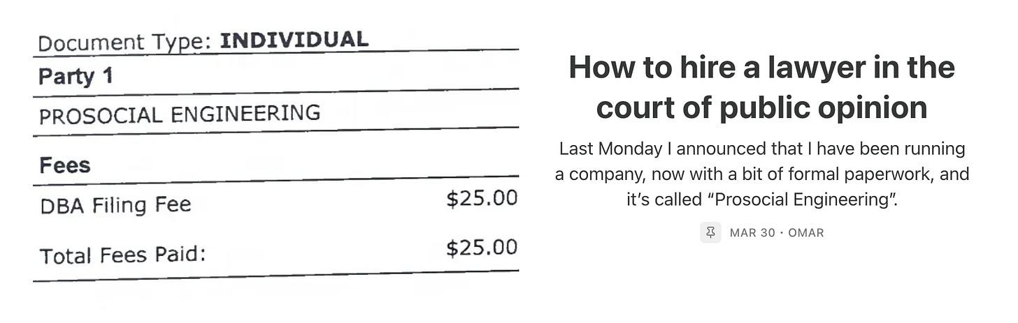 Omar zooms out to the business model. He’s essentially a “truth lawyer” — operating in the court of public opinion the way defense attorneys operate in actual court. The industry already exists (crisis management, reputation firms), but it’s in the shadows. Omar wants to normalize it: de-stigmatize hiring someone to help you surface your side of the truth. The first move is just pointing out who has representation and who doesn’t, because right now, the side with a lawyer wins regardless of what’s true.